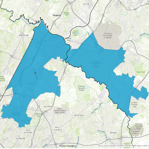 MD Legislative District 21 has 82,000 registered voters. Included in this district are the communities, of College Park, Beltsville and Laurel in Prince George’s County, and a portion of Western Anne Arundel County including parts of Crofton and Odenton.