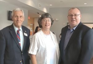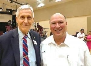 | On Sunday, July 29, 2018, I visited the First Baptist Church of Laurel to attend worship services and enjoy the company of members of the congregation. Havis campaign supporter, Barbara Scott, was in the choir, and helped me get acquainted with various members of the church family, including the senior pastor, Brent Brewer, shown in the picture with Barbara and me. This large church is also the home of a private school, and non-English church families for Hispanic, Vietnamese, and Korean. In the other picture, I’m shown with pastor Gus Suarez, a native of Cuba, who is the Hispanic pastor. | |